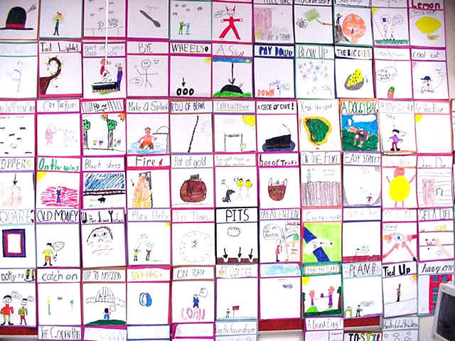 In 1981 I was teaching in Nanaimo, British Columbia, Canada and I taught with a teacher named Pat Lyon. She taught ESL (English as a Second Language) to children who did not speak English. She was also very involved in the Multicultural Society who supported new immigrants to Canada. One day she asked my wife and I to come over for a barbecue. We accepted and then she said, "Oh, I have invited a family from Czechoslovakia to come as well and we are going to teach them about Canadian idioms". I said that my wife and I weren't experts on idioms but she said that we would be surprised. That afternoon my wife and I discovered how many idioms we knew and how they are so much a part of everyday speaking that we don't even recognize them. I decided to start teaching idioms in my classroom. Over time, I found several lists of idioms and had my students draw pictures of the literal meanings.